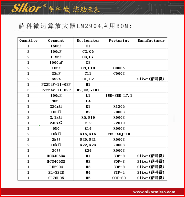 5.薩科微運算放大器LM2904應(yīng)用BOM: