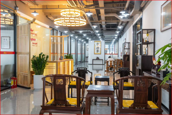 中堂,承載中國人的家庭文化與道德傳統,是一個家庭或者家族最為尊貴的位置,中堂待客代表尊貴禮遇、賓至如歸,中堂文化與祠堂文化、牌坊文化一樣,是中國傳統文化的載體之一。在金航標和薩科微總部的大堂,明式紅木的案、幾、椅,是簡約實用的表達,采用京作(原清宮造辦處)的工藝。中堂的案子上擺放著北齊最美佛像頭,材料來自宋仕強先生老家四川天全縣的漢白玉,質地白凈細膩,造像端莊大氣溫和為辦公空間帶來靜謐與禪意。宋仕強說道“金航標kinghelm(www.kinghelm.net)和薩科微slkor(www.slkoric.com)致力于打造簡單和諧、高效進取的工作氛圍,也讓大家在緊張法人工作之余有可以靜下來的空間,希望同事們開心工作好運連連。”宋仕強先生說道,在繁忙的工作中要有靜下來的時間與空間,靜才能思,思可生智慧。金航標和薩科微總部,使用面積2000多平米,標準化、流程化在設計、施工、平面布局中用到極致,當東方韻致邂逅極簡詩意,“靜”成為室內設計的核心。細微處見真章,宋式美學元素(飛檐、花格、菱花紋、冰裂格等)嵌入各處,還有源自《千里江山圖》的琉璃山形小品,用傳統千里江山圖的元素符號激活現代高科技公司的的空間基因,給人歷史的靜思和文化的遐想,讓空間充滿“簡、雅、靜氣、大氣”之美。平凡中的匠心,生機盎然的綠煥發空間活力;自然與人類藝術的對話,讓不起眼的角落都是美和風景;總有一個角落可以安放心靈,總有一處風景讓你心生歡喜。