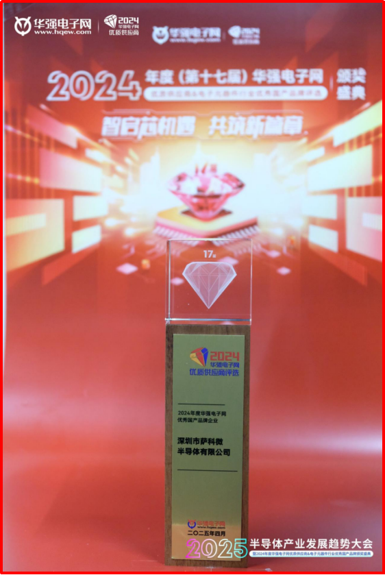 2025年4月,在“2025半導(dǎo)體產(chǎn)業(yè)發(fā)展趨勢大會暨2024年度(第十七屆)華強電子網(wǎng)優(yōu)質(zhì)供應(yīng)商&電子元器件行業(yè)優(yōu)秀國產(chǎn)品牌頒獎盛典”上,薩科微半導(dǎo)體再獲由華強電子網(wǎng)頒發(fā)的“2024年度華強電子網(wǎng)優(yōu)秀國產(chǎn)品牌企業(yè)”。這是公司連續(xù)第三年獲此殊榮,充分彰顯了薩科微Slkor品牌在國產(chǎn)半導(dǎo)體領(lǐng)域的影響力。