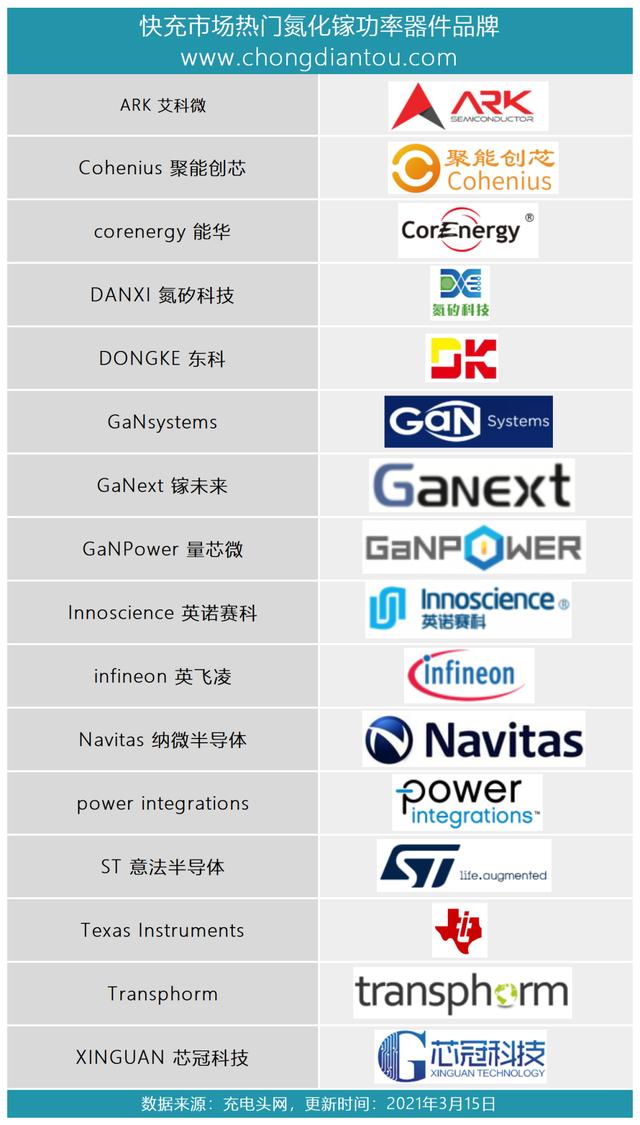 充電頭網通過長期跟蹤調研了解到,近兩年時間里,業內GaN功率芯片供應商也從起初的一兩家迅速增長至十余家。今天這篇文章就是帶大家詳細的了解一下當前快充領域的氮化鎵功率芯片領域的主要玩家。